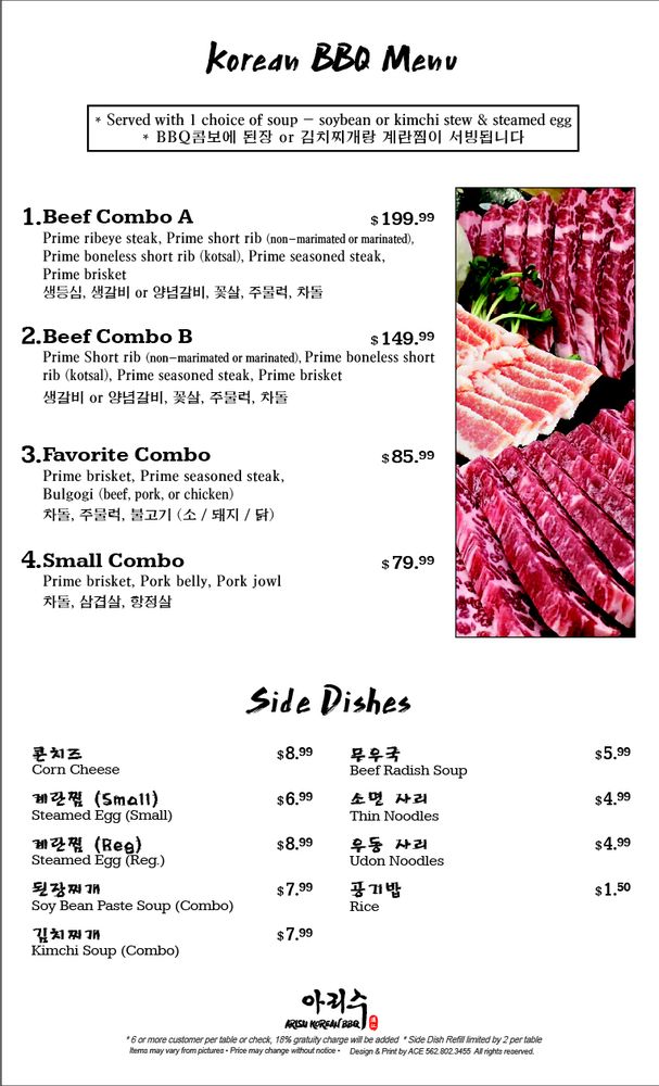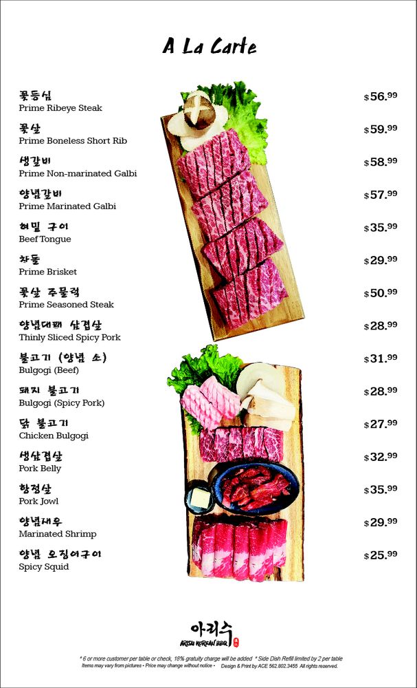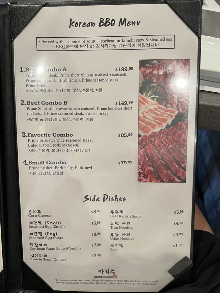 Arisu Korean BBQ, located in Buena Park, CA, offers a premium dining experience for those craving authentic Korean barbeque. With a menu that includes top-tier cuts of meat like Prime ribeye steak and seasoned steak, Arisu sets itself apart from standard all-you-can-eat options. Customers rave about the quality of their kkot sal and seafood pancake, highlighting the attention to detail and skill of the staff. Despite some mixed reviews regarding service and ambiance, the overall consensus is that Arisu is a must-visit for a family meal that's sure to impress. Whether you're looking for a casual dinner or a special occasion, Arisu Korean BBQ promises a delicious dining experience that won't disappoint.